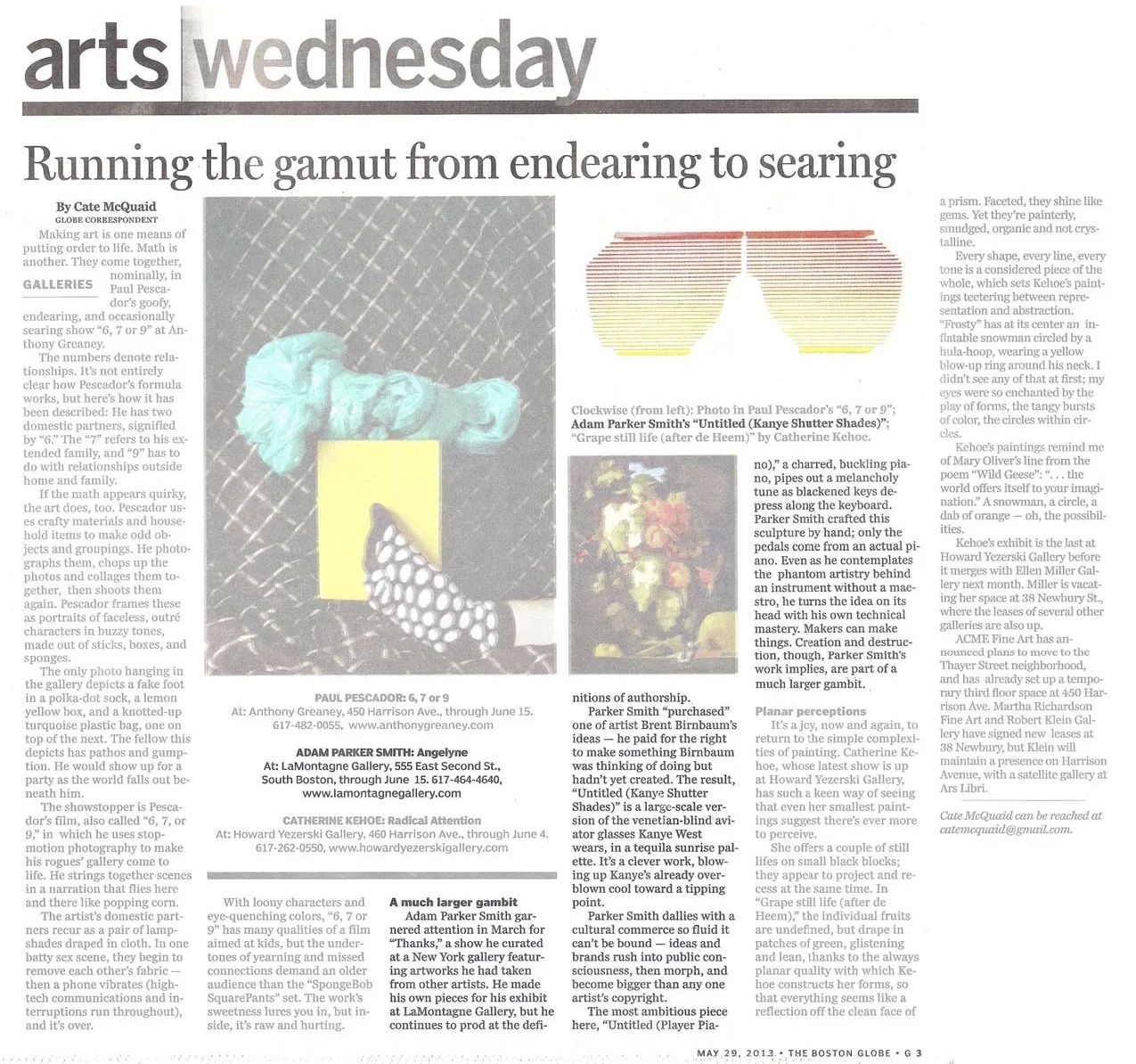 Boston Globe Review by Cate McQuaid: Running the gamut from endearing to searing